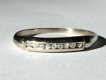 This is a beautiful diamond band set in 14k white gold. Perfect for a wedding band, unique engagement ring, or stacking ring!