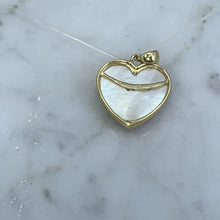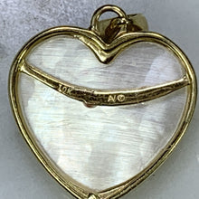 Beautiful vintage 1960s heart shaped pendant with mother of pearl and ruby and diamond flower accents set in 10k yellow gold. It would make a wonderful "something old" gift for a bride to be to wear at her wedding!