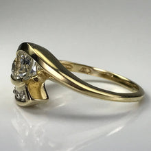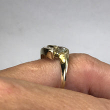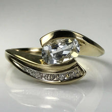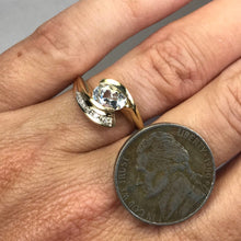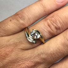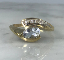 Aquamarine Diamond Ring. Modernist 10k Yellow Gold Setting. March Birthstone. 19th Anniversary Gift. - Scotch Street Vintage