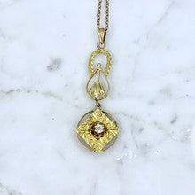 1930s Diamond Pendant in 10K Yellow Gold Filigree. Drop Pendant with Art Nouveau Style. - Scotch Street Vintage