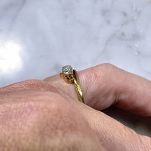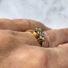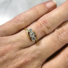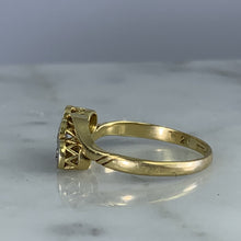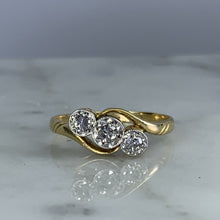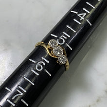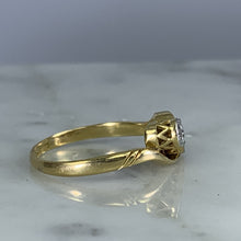 This is an antique beauty! It is a 3 stone art deco diamond engagement ring with a total carat weight of .16 but since the diamonds are allusion set people will mistake it for five times that. This is such a classic and would make a wonderful engagement ring or promise ring.